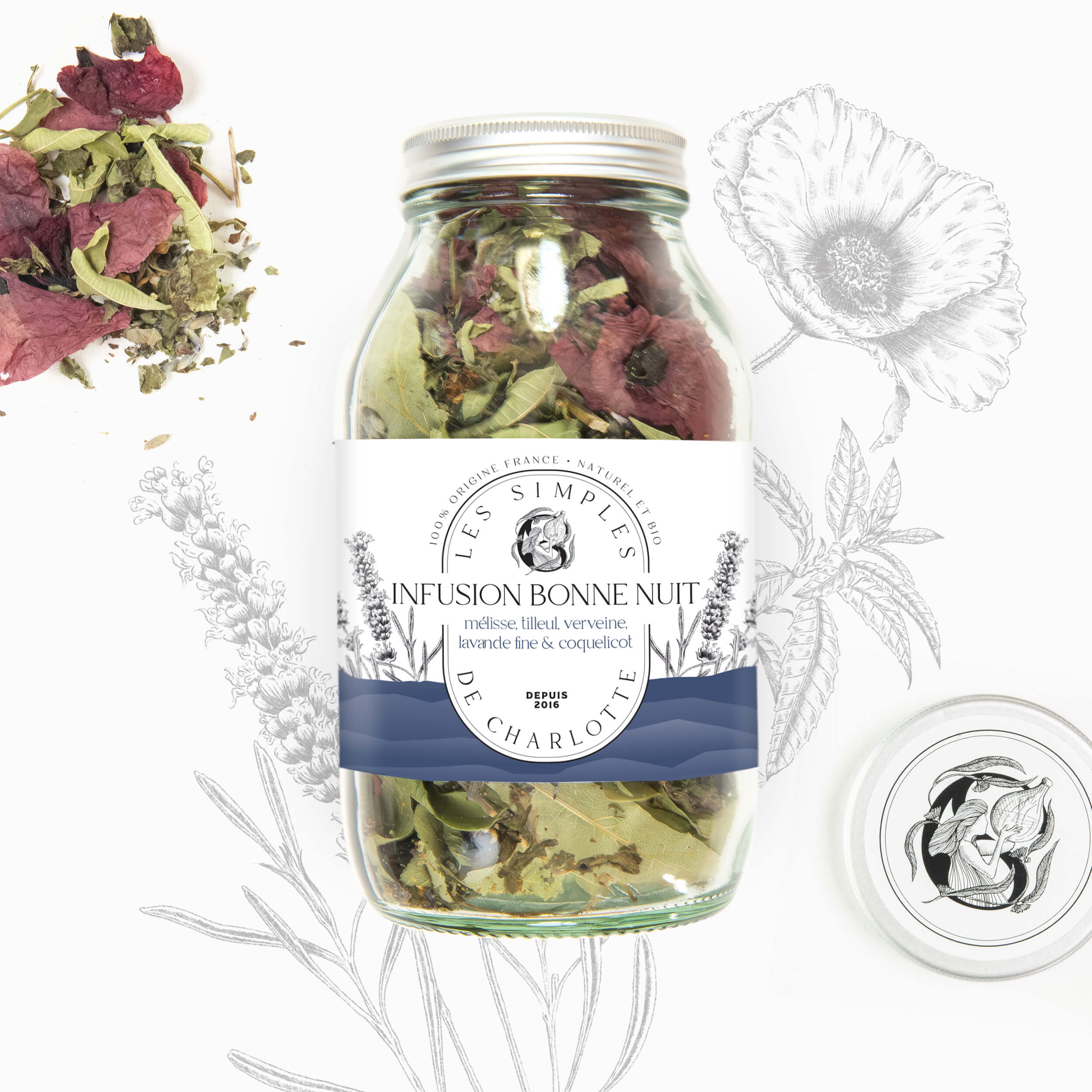 Chez Les Simples de Charlotte, l’infusion possède une DLUO (Date Limite d’Utilisation Optimale) de 12 mois. Mais plus vous la consommez rapidement, plus elle sera efficace et aromatique.