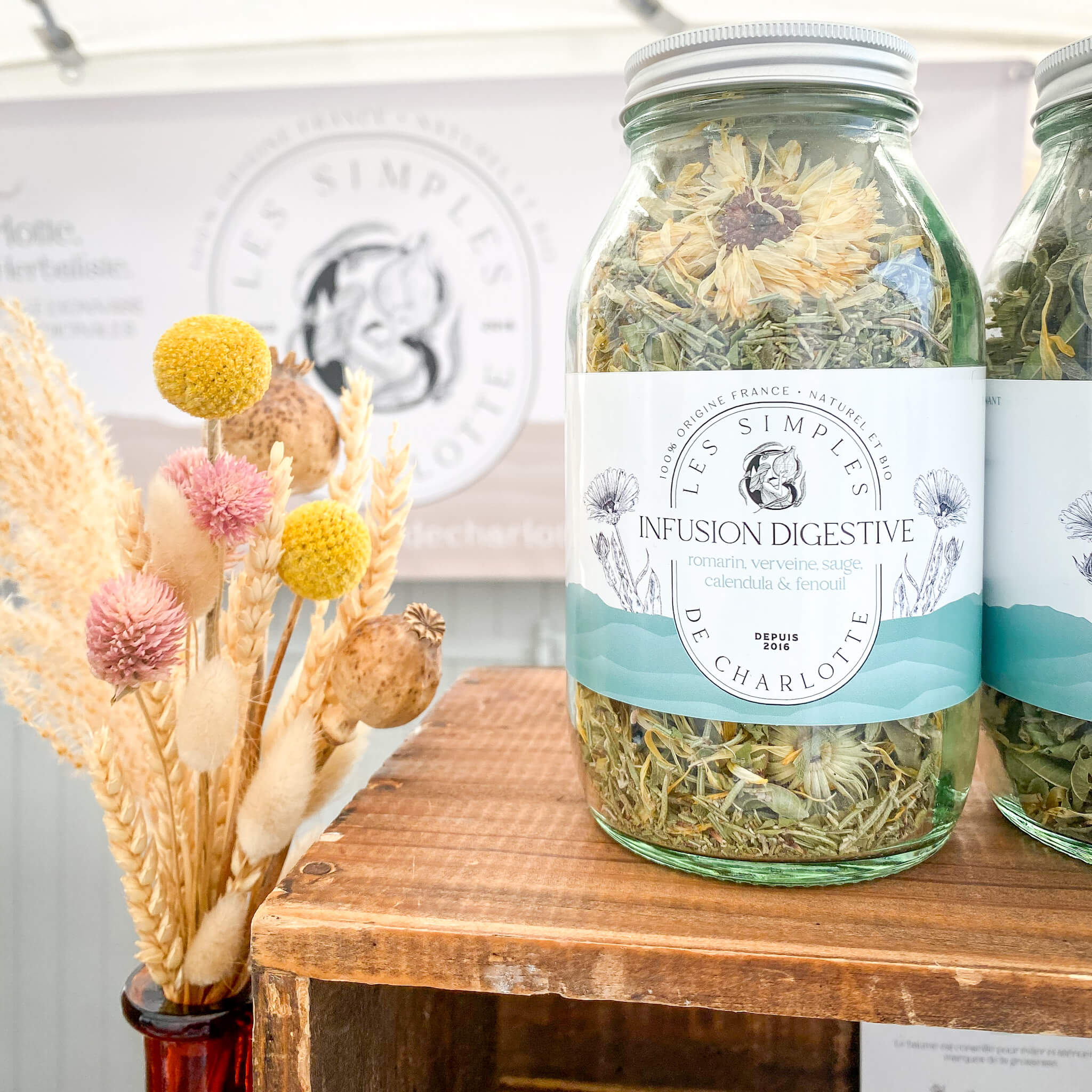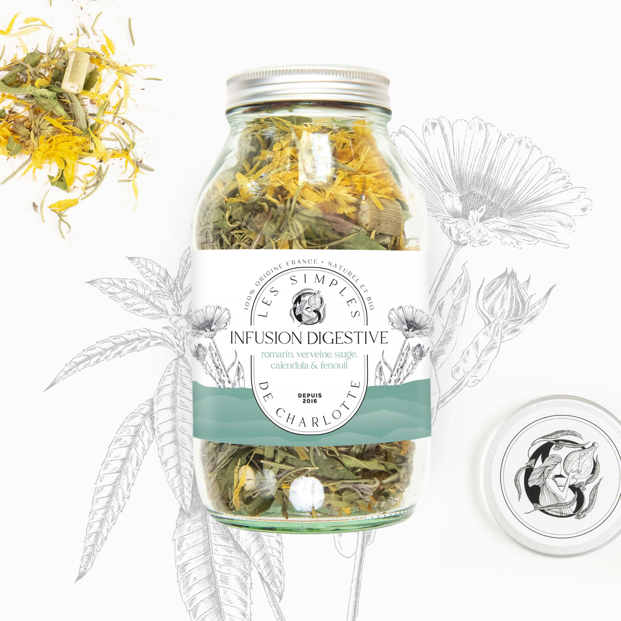 Chez Les Simples de Charlotte, l’infusion possède une DLUO (Date Limite d’Utilisation Optimale) de 12 mois. Mais plus vous la consommez rapidement, plus elle sera efficace et aromatique.