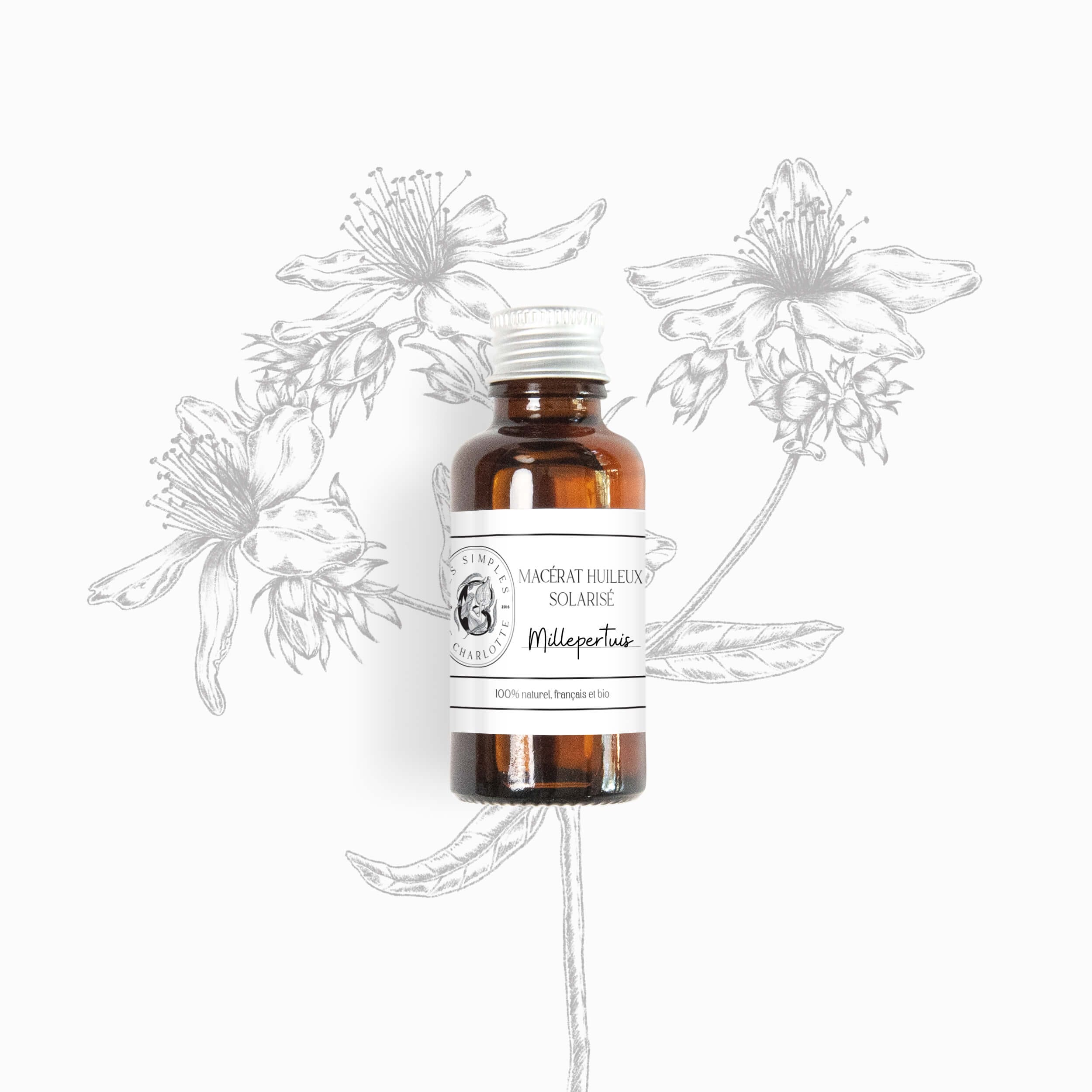 Macérat artisanal bio de millepertuis, solarisé en Provence.