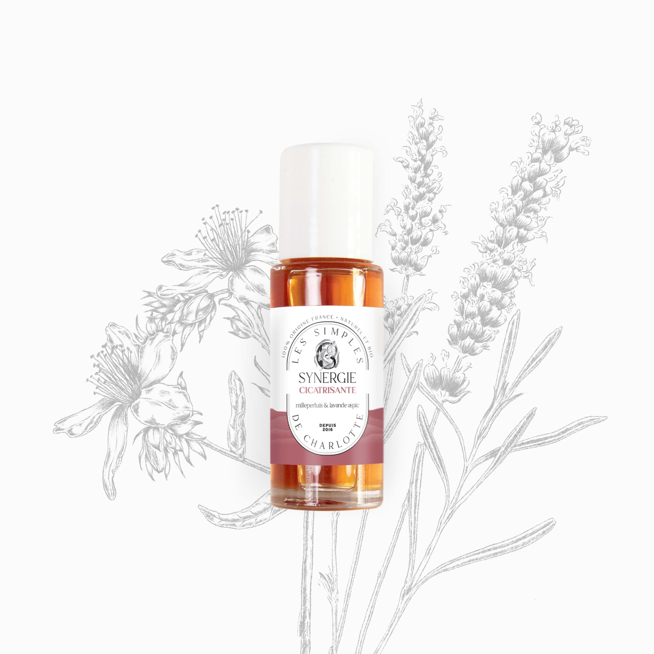 La synergie de massage cicatrisante au millepertuis et à la lavande aspic associe des plantes médicinales reconnues pour leurs propriétés apaisantes, anti-inflammatoires et réparatrices cutanées.